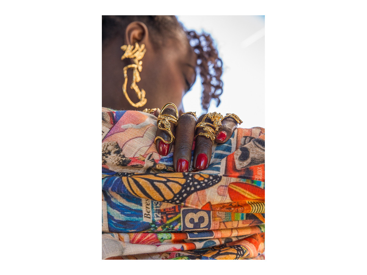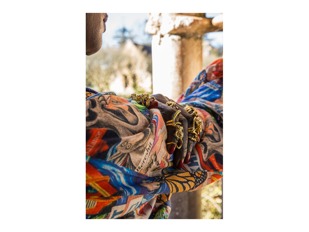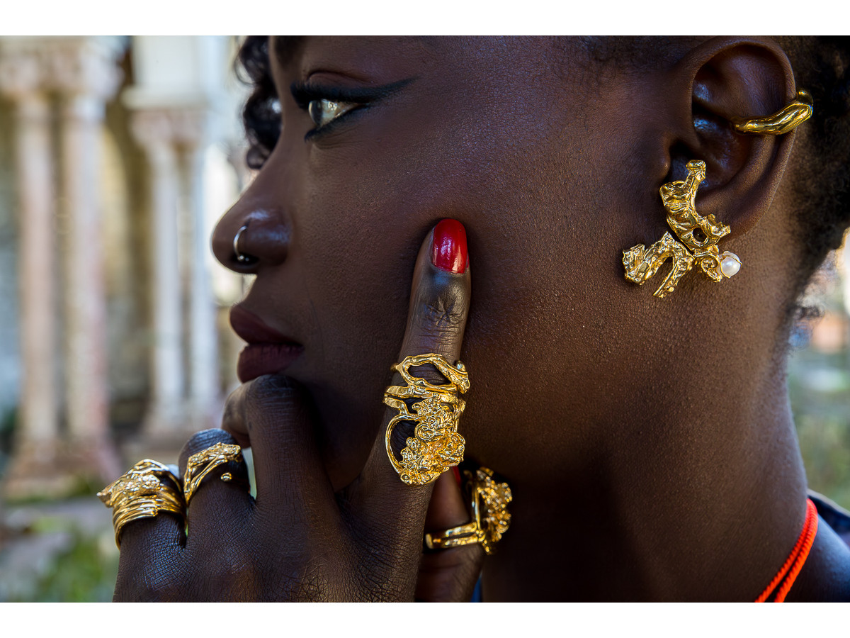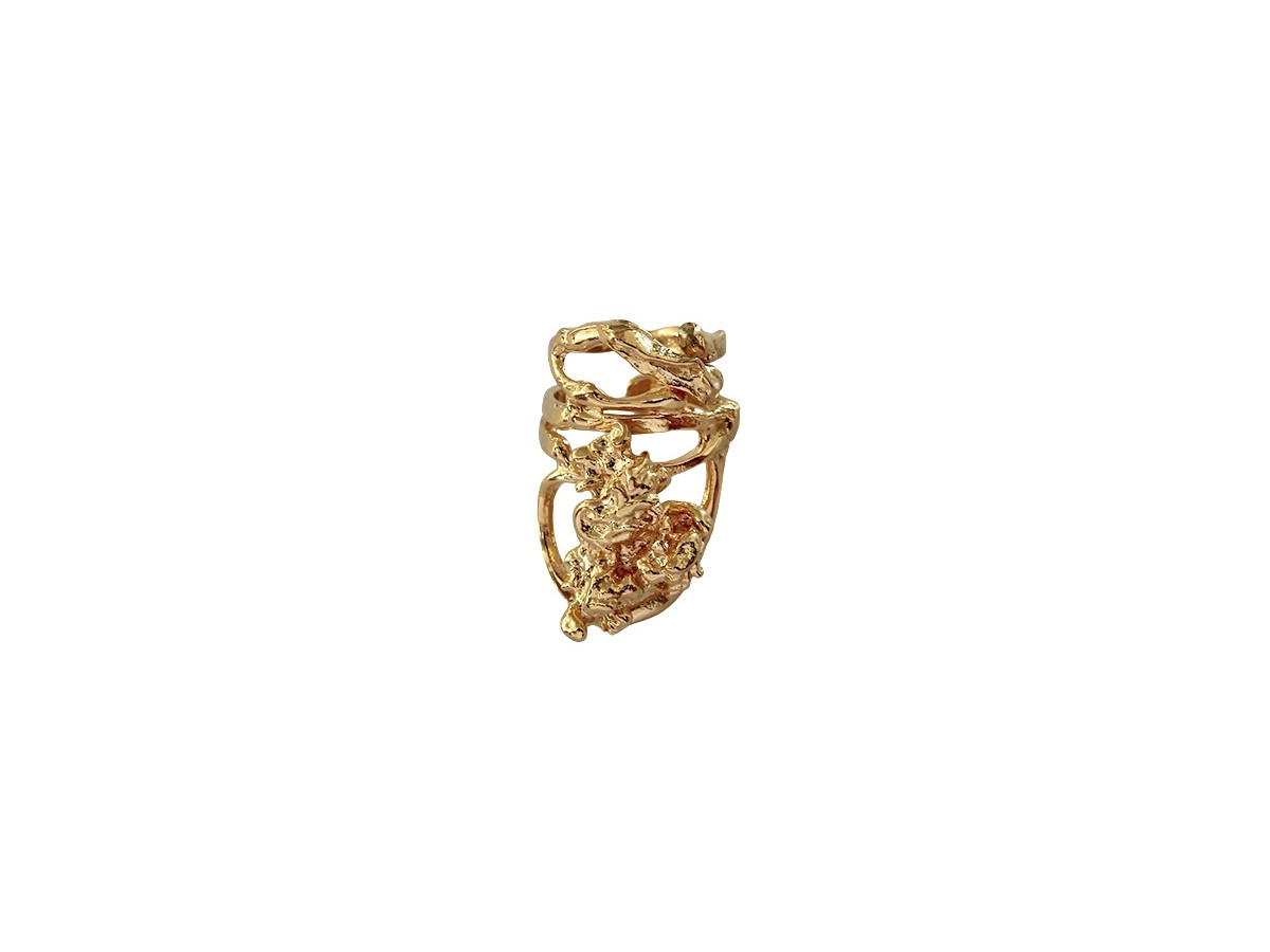 Bague, dans un genre ethnique chic et haute couture, dorée à l'or fin 24 carats.